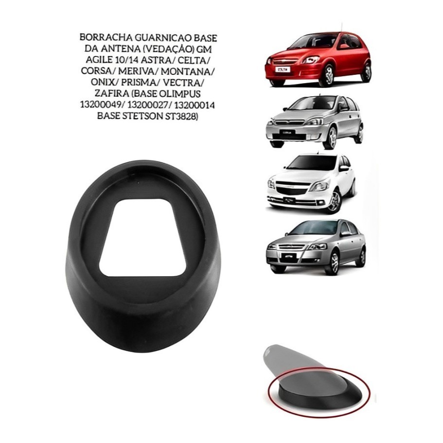 Anel de Vedação Borracha do Teto Acessório automotivo possui acabamento na cor preta. Fixação firme e prática, além de alta durabilidade Compatível: - Gm Agile (10/14); Corsa/ Montana/ Prisma/ Celta - Agile/ Vectra/ Zafira/ Meriva/ Onix/ Prisma * (Não Serve no Astra com Esguicho)* (BASE OLIMPUS 13200049 / 13200027 / 13200014 (BASE STETSON ST3828) *Imagem de capa meramente ilustrativa, exemplo da borracha nas fotos seguintes*